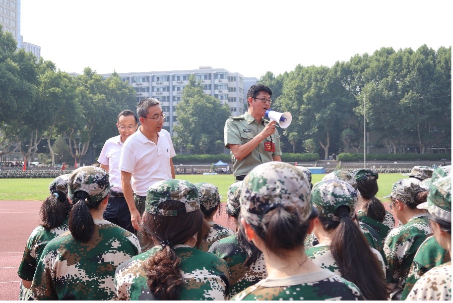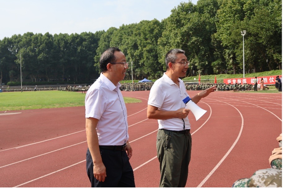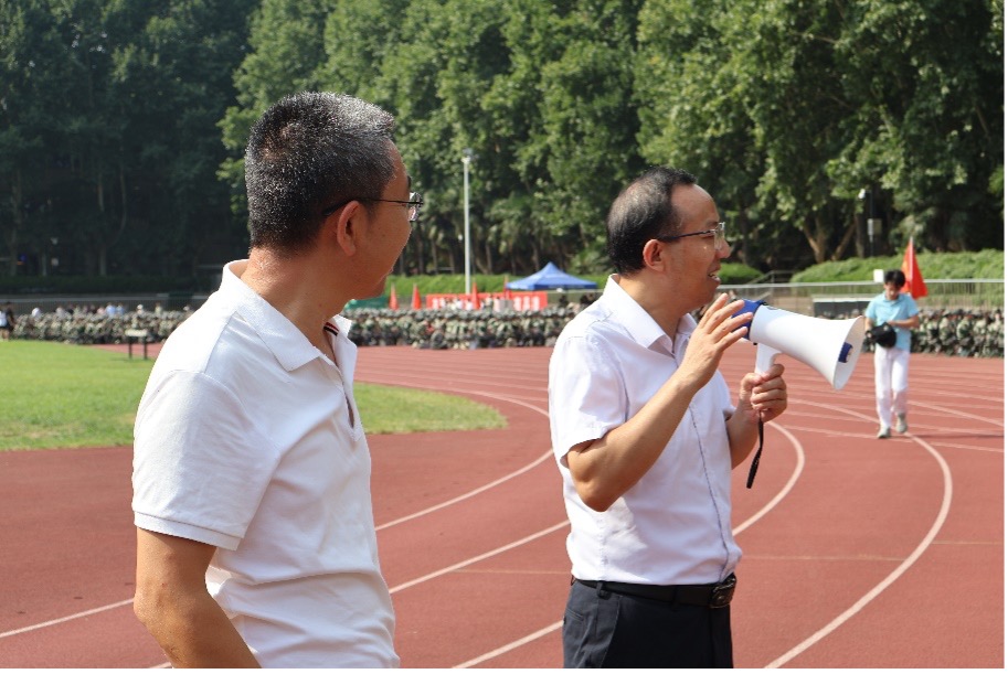 向同学们致以亲切问候,并对辛勤指导的教官们表达了由衷的谢意。在看到学子们充满活力的笑容时,他感到无比亲切,并强调军训期间同学们应注重身体健康,及时向家人报平安,希望同学们平安、健康、快乐地度过军训时光。