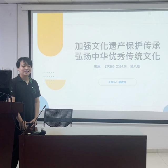 与会教师结合所学内容积极开展了研讨。吴锋联系自身研究认为,陕西省是中华民族的重要发祥地之一,西周、秦、汉、隋、唐等14个王朝建都陕西,拥有4.9万余处不可移动文物、774万余件可移动文物、76座革命纪念馆,有黄帝陵、延安宝塔等中华文明和中国革命的精神标识,是历史文化遗产最富集的省份之一。陕西打造万亿级文旅产业高地,为传统文化传承创新研究提供了良好的环境和机遇。我们要牢记总书记来陕讲话嘱托,坚定不移做好传统文化的传承创新研究。刘婵君表示,优秀的民族文化能够塑造身份认同、凝聚社会共识、提升国家软实力。在相关研究中,我们要特别关注文化遗产保护与传承、传统文化与现代社会融合、地域文化与地方特色文化研究等文化研究难点与热点问题,开拓创新的研究路径。王威力认为,弘扬中华优秀传统文化是提升国家文化软实力、增强国际话语权的关键一环。我们应积极运用现代传播技术和创新叙事方式,讲述文化遗产背后的故事,展现其独特的文化价值和时代意义,促进文化的交流与互鉴。王含阳指出,廖老师从撰写申报书的角度系统梳理了求是杂志的文章,就总书记对文化产业发展所面临的任务、挑战和路径的相关论述作了深入的分析。这种思路对于我们解读政策性文章来说非常有启发意义。达雅楠从领学内容得到启发,指出文化遗产既是中国文化最典型而有效的载体,也是连接中国与世界的重要桥梁。提升文化遗产海外传播效果,需要进一步从创新化、符号化、数字化、国际化寻找传播突破口。