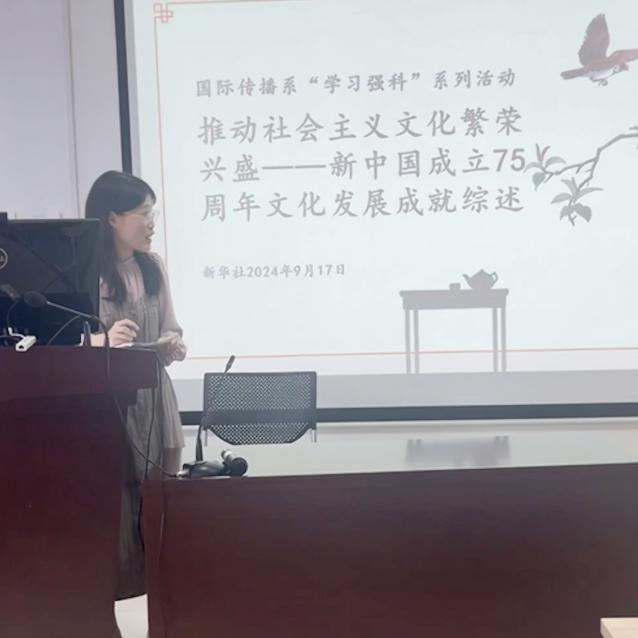 随后,刘彦以“推动社会主义文化繁荣兴盛——新中国成立75周年文化发展成就综述”为主题进行分享,从人民至上、守正创新、立心铸魂这三个关键词出发,用具体的数据和案例梳理建国75年以来社会主义文化发展的成就。她认为,对这些发展成就的学习可以帮助我们具象地了解文化的作用,将文化融入至课题和教学中,促使我们的研究工作更有针对性和时效性。