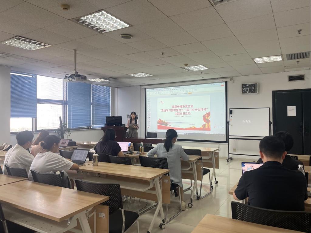 为深入学习贯彻党的二十届三中全会精神,切实把学习成果转化为做好教学科研工作的强大动力,9月23日下午,国际传播系党支部举行了“系统学习贯彻党的二十届三中全会精神”主题党日活动。会议由党支部书记刘彦副教授主持,国际传播系全体师生党员参会。