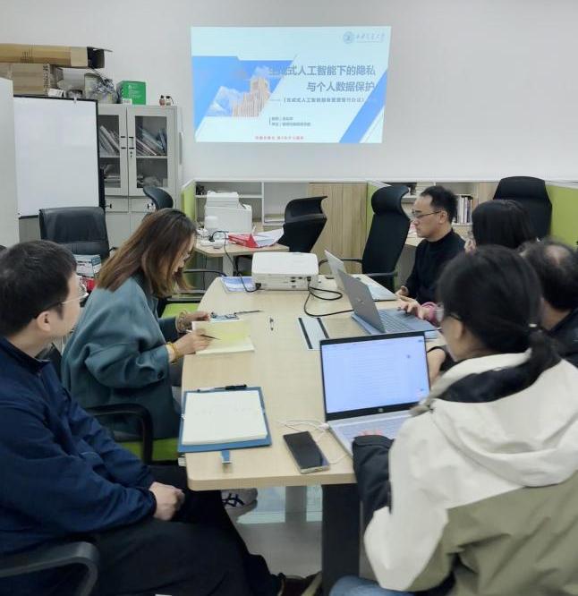 与会师生结合所学内容积极展开研讨。马晓悦教授强调了理论与实践相结合的重要性,她指出,作为研究者,不仅要关注宏观政策的发展趋势,更要将其与个人的研究兴趣紧密结合,这样才能在学术研究中取得真正的突破和创新。陈积银教授对选题的前沿性给予了充分肯定。他认为,随着时代的进步,隐私文化也在不断革新,因此,我们在进行学术研究时,需要谨慎对待过去的理论,确保其能够适应今天的社会需求。与会师生还围绕生成式人工智能时代的版权问题、隐私权问题以及文化差异性问题进行了热烈讨论。