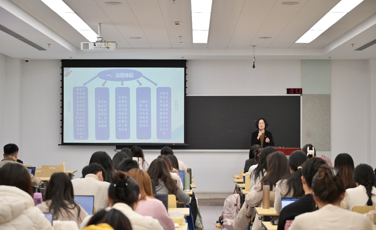 师生做关于《抗战时期西北报刊的边内一体化叙事与中华民族整体性构筑——以<新西北>为例》讲座。pg电子试玩(中国)官方网站