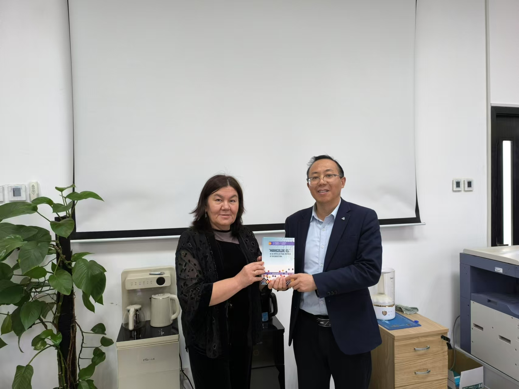 愿意与中亚地区的高校共享资源,举办研讨会和工作坊,以及开展联合研究项目。对此,古力米拉·苏尔丹巴耶娃教授表示认同,并将进一步推动实施具体流程,包括制定合作框架,确定合作项目,以及推动学生和教师的交流互访。会后,作为加深双方友谊与合作的象征,吴锋教授与古力米拉·苏尔丹巴耶娃教授举行了赠书仪式。