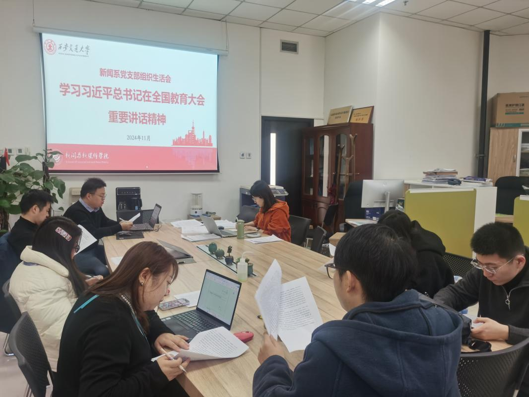 新闻系党支部在主E409会议室召开专题组织生活会,集中学习了习近平总书记在全国教育大会上的重要讲话精神。会议由党支部书记李巨星副教授主持,支部全体师生党员同志参加。
