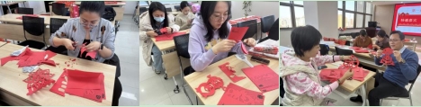 剪窗花环节同样人气高涨。彩色纸张在师生手中轻盈翻转,纸屑纷扬间,精美的窗花逐渐成型。传统的福字纹、生肖蛇图案,大家发挥想象,将对新年的憧憬融入这方寸红纸。相互交流剪纸技巧时,欢声笑语不断,古老的剪纸技艺化作新春纽带,串起情谊,也让非遗文化在校园焕发生机,窗户贴上亲手所剪窗花,年味瞬间满溢。