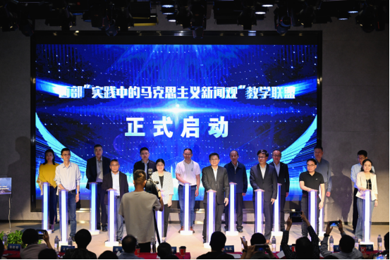 在现场师生的见证下,西安交通大学、四川大学、兰州大学、陕西师范大学、西北大学、宁夏大学、长安大学、新疆大学、西北政法大学、西安外国语大学、延安大学、西南民族大学、西北师范大学、青海师范大学、西藏民族大学等15所院校代表上台,共同启动西部“实践中的马克思主义新闻观”教学联盟。云南保山pg电子试玩