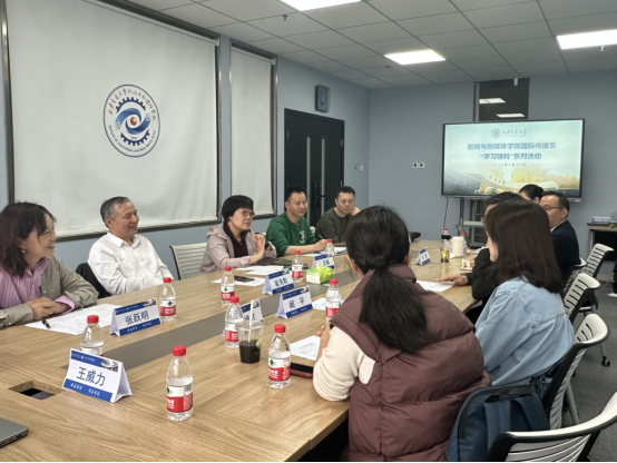 院长汪文斌、党委副书记吴锋、新媒体系副教授沈霄、智能传播系副教授杨帆及国际传播系全体师生参与研讨,国际传播系教授阚平主持本次会议。