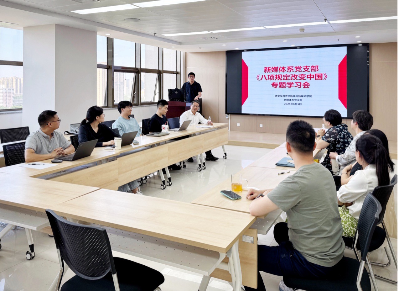 2025年6月5日下午,新媒体系党支部召开了《八项规定改变中国》专题学习会。新媒体系师生党员参会,会议由新媒体系党支部书记牛耀红主持。