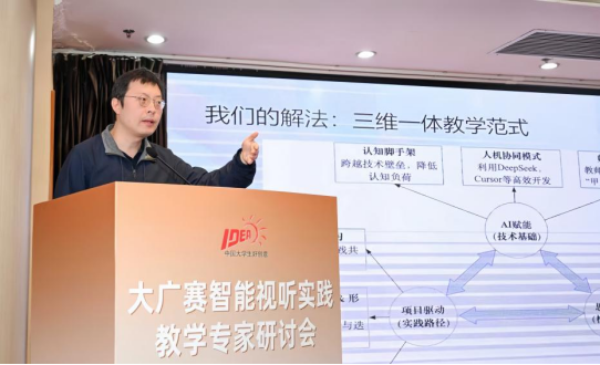杨帆在题为《AI+产品思维:驱动应用型课程的价值创造》的分享中,介绍了其在课程实践中探索的“三维一体”教学范式,即AI赋能(技术赋能)、项目驱动(实践路径)与思维重塑(核心目标),以期打破传统教学中“技术发展、理论知识、评价机制”的三重割裂困境,培养能驾驭AI、懂用户、会创造的复合型创新人才。他认为,在人工智能加速脑力替代与文化产业工业化的趋势下,驱动应用型课程的破局点在于“AI作为效率引擎”与 “产品思维作为价值罗盘”的深度结合。