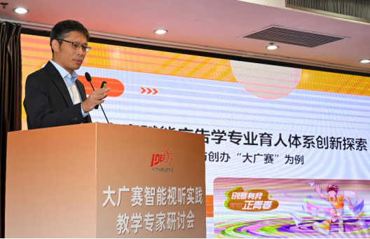 “人工智能+传媒”的学科发展特色。他表示,大广赛组委会与我院共同建立的“智能视听实践教学基地”,将着力于加快推进实践教学课程体系改革,全面提升全国高等院校智能视听相关专业教师的教学实践能力,力求在选拔智能传播高端行业人才、树立智能行业行为规范的同时,为社会培养兼具人文底蕴、创新思维与社会责任的新时代传媒人才。