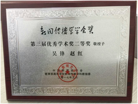 “新闻传播学学会奖”旨在通过评选、奖励新闻与传播学研究的优秀成果,凝聚学界力量、弘扬学术精神,激励学术新人的成长,促进中国新闻与传播学的深入开展。该学会奖由新闻与传播学界国家一级学会中国新闻史学会主办,由教育部高等学校新闻传播学类专业教学指导委员会合办。第三届“优秀学术奖”共评选一等奖2件(新闻学与传播学相关成果1件,新闻与传播史专项成果1件)、二等奖5件(新闻学与传播学相关成果4件,新闻与传播史专项成果1件)、三等奖10件(新闻学与传播学相关成果8件,新闻与传播史专项2件)。