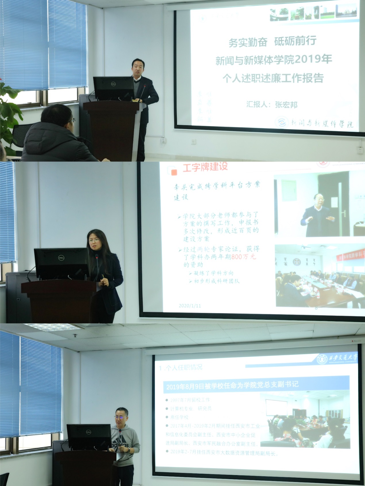 班子汇报了2019年度新媒体整体工作情况,从班子思想政治建设、领导能力、工作实绩、党风廉政建设、作风建设五方面展开,对全年班子整体工作态度和工作实效做了汇报。