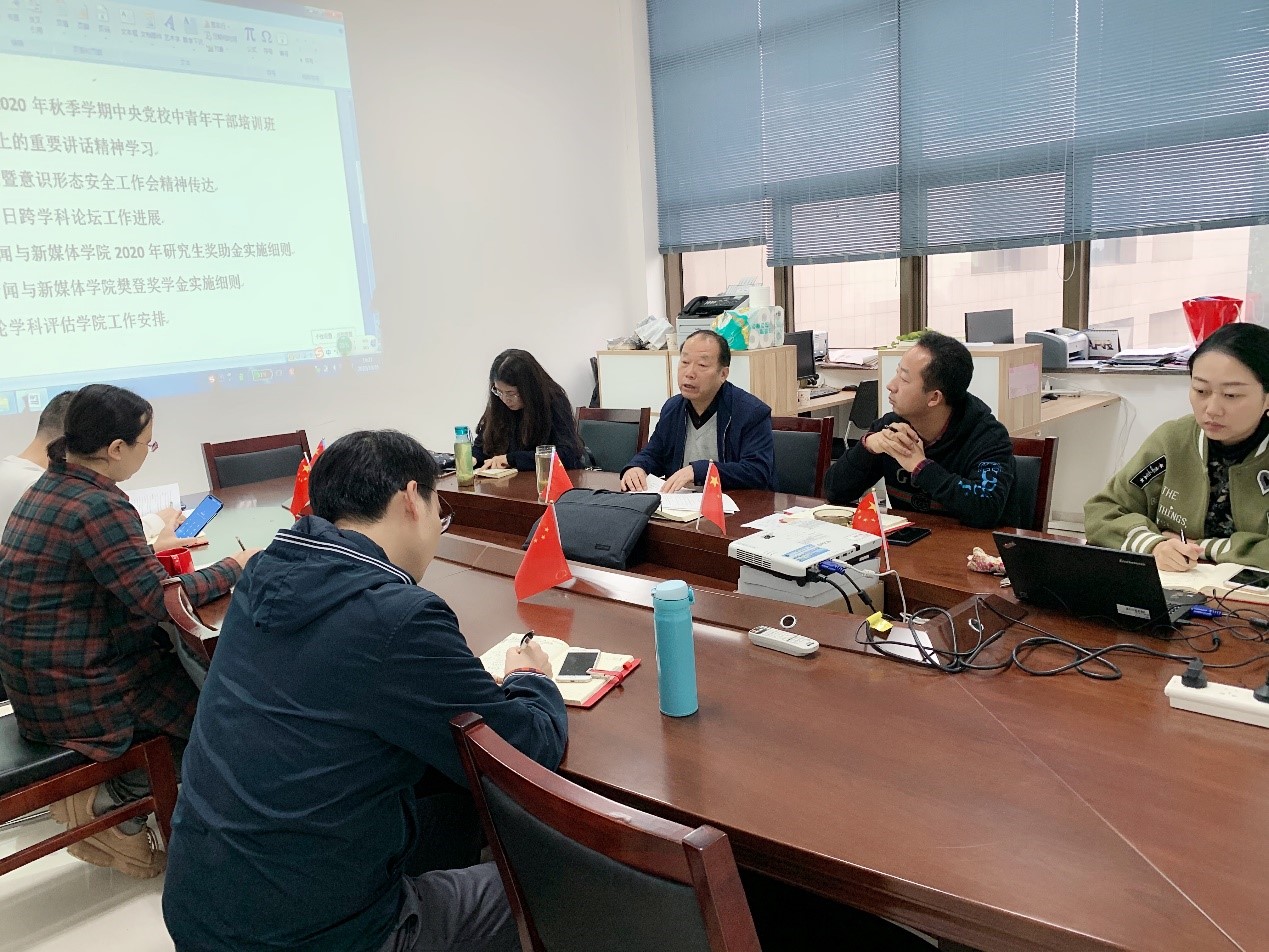 召开本学期第四次党政联席会,安排部署“跨学科视域下的新闻传播”高峰论坛等工作。会议由李明德院长主持,pg电子试玩