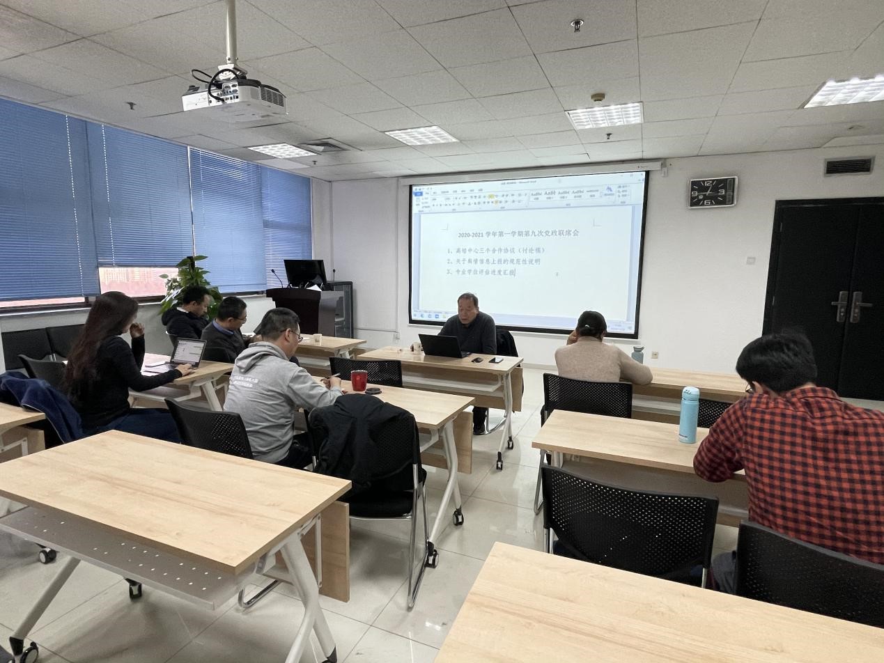 第九次党政联席会暨“中心组班子成员讨论会”在主E1104会议室举行。审议学位评估、高培中心合作协议等事项,党总支重温“毛泽东同志《党委会的工作方法》”,聚焦领导班子工作能力进行提升培训,书记兼院长李明德主持,全体领导班子参会。