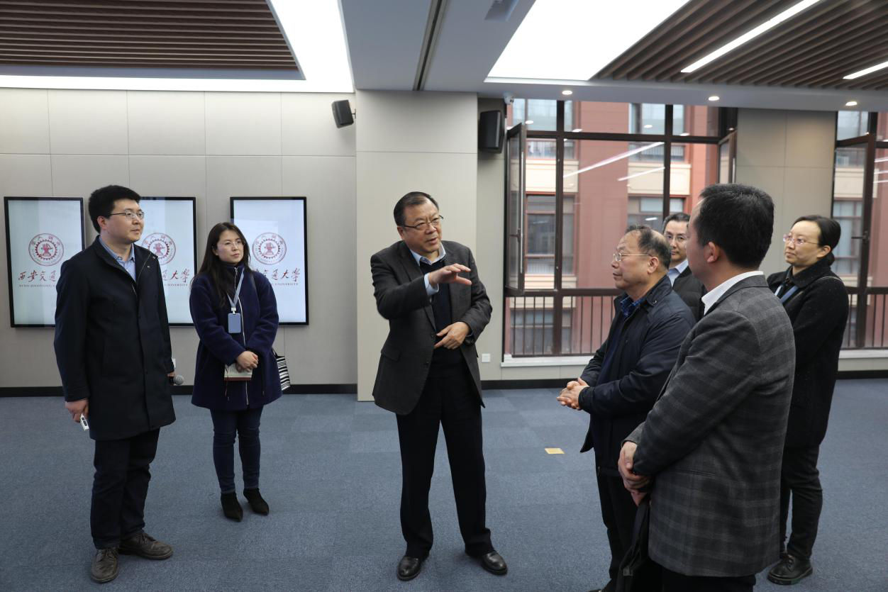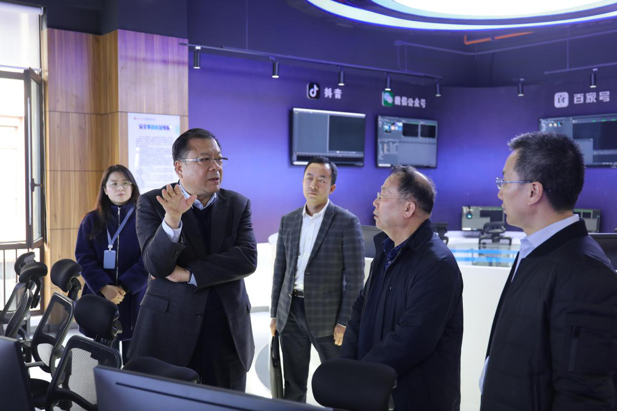 卢建军先后来到学校融媒体平台、新媒体智慧学习工场、传播内容认知国家重点实验室西安交通大学传播内容智能理解研究中心等,了解平台和学科建设情况。