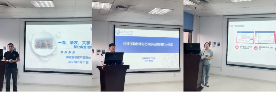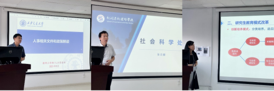 人力资源部副部长费强,社会科学处副处长张日鹏,实验室与资产处副处长陈哲,研工部副部长薛周利,研究生院培养办主任程洁,财务处核算科主管吴婷作主题培训,pg电子试玩