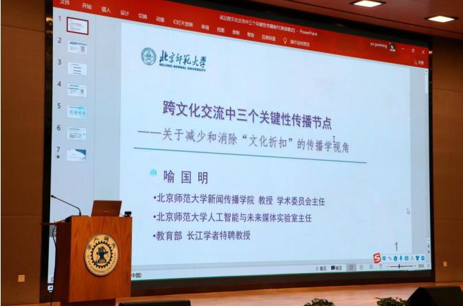 喻国明教授在线上进行了题为“跨文化传播中三个关键性操作——关于减少和消除‘文化折扣’的传播学视角”的主题分享,对文化折扣现象的内涵、表征、测量维度等作出解读,提出跨文化传播中的三个重要节点:信息触达、信息解码、信息认同,并为从传播学角度减少和消除“文化折扣”提供思考方向。