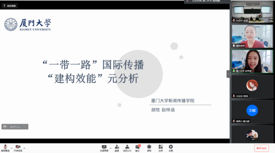 胡悦老师作了题为“一带一路”国际传播“建构效能”元分析的报告。报告从研究背景、研究方法等方面详细分析了“一带一路”国际传播的“建构效能”,研究表明目前“一带一路”在国际传播中获得了总体平衡且偏向正面的评价和传播效果,在研究对象和样本选择方面,境外社交媒体具有较高的创新价值和理论发展空间,在研究方法方面,计算机辅助分析与人工分析相结合既能处理大数据,又能保障不遗失重要的细节信息,是未来发展的方向。