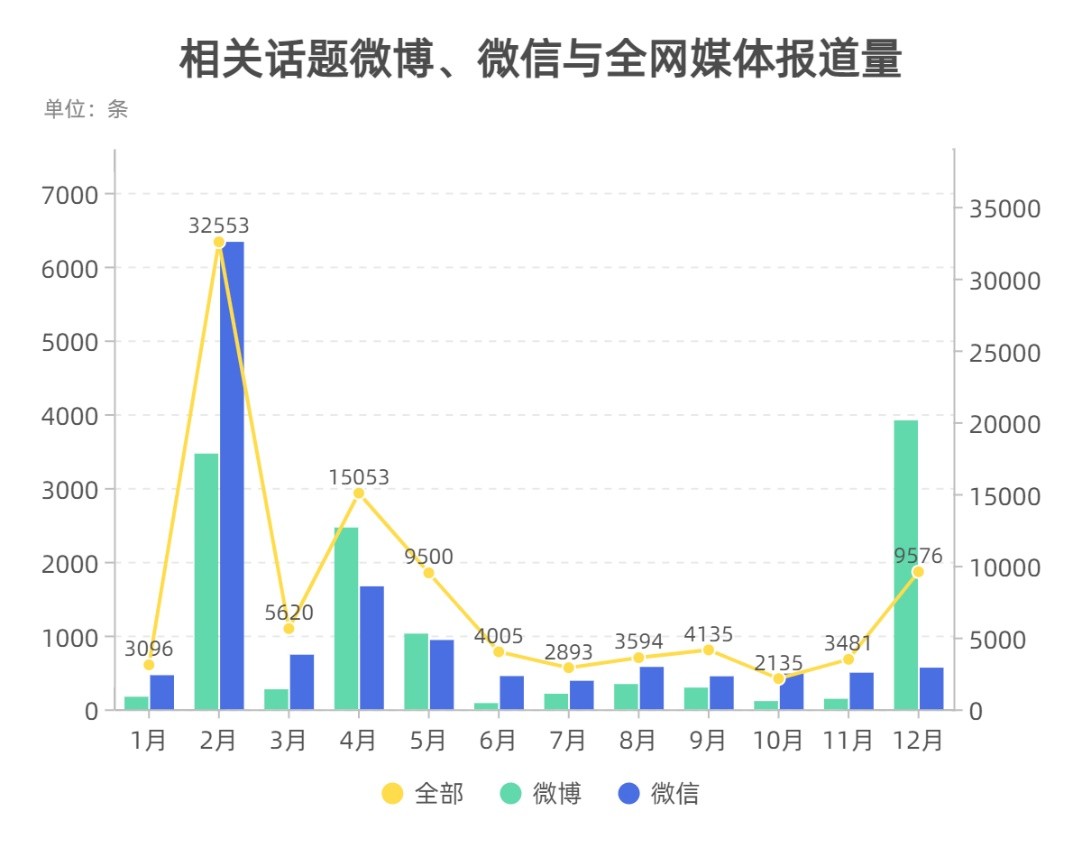 注:媒体报道数量是指从传统新闻媒体、客户端、新浪微博、微信、网站等来源采集海量信息的基础上,提取与指定事件、人物、品牌、地域等相关的信息,进而统计的信息数量,数值越大,表明媒体关注度越高。分析时间段为2021年1月1日至2021年12月29日。