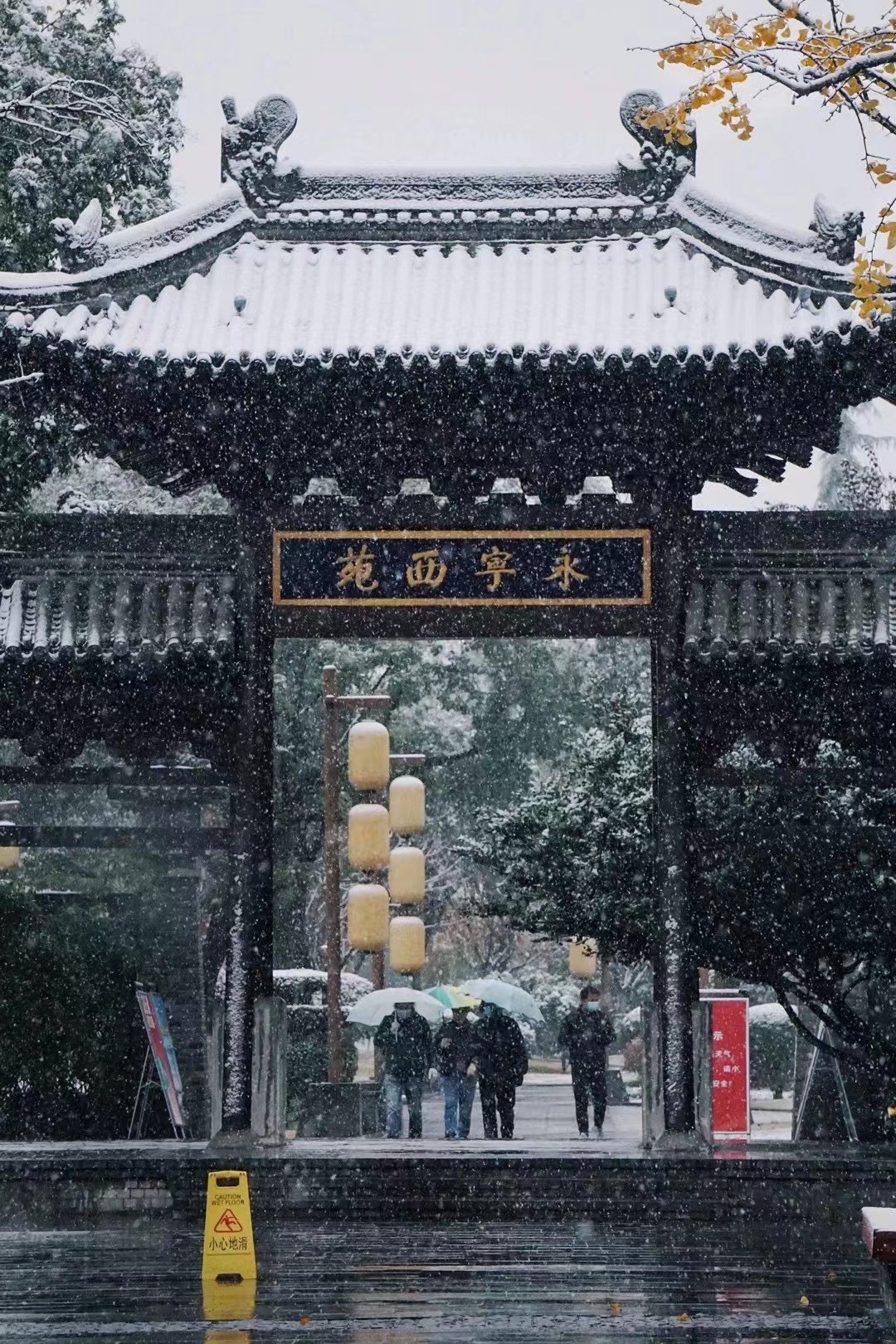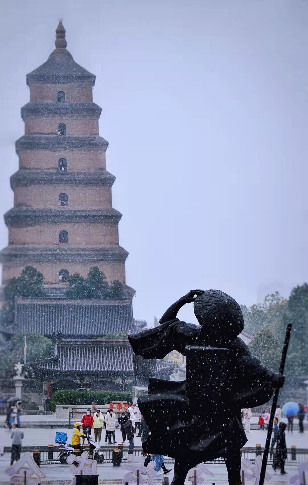 大雁塔上,白雪飘零
