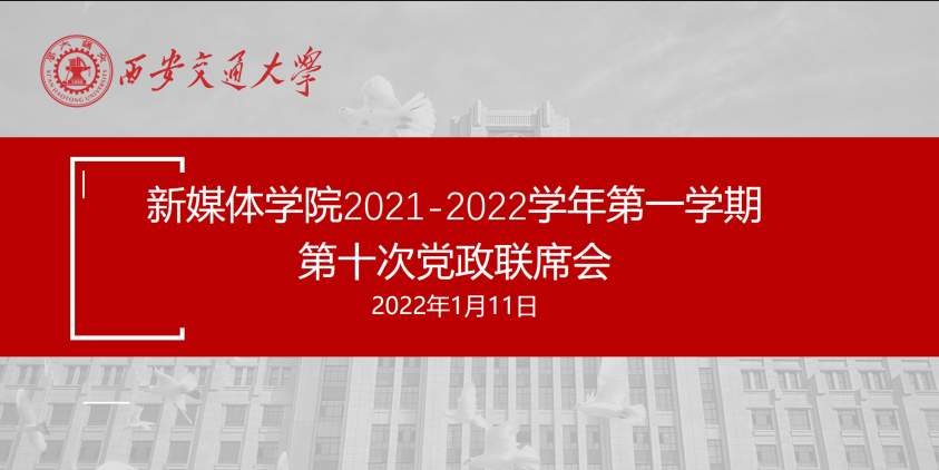 孙鹤立副院长通报2022年度国家社科基金申报进展及计划;韩博副书记通报疫情期间学生工作相关情况,将持续做好学生关心关爱工作;张宏邦副院长汇报近期教学工作,疫情发生所有教学活动由线下调整至线上进行,整体教学有序,已做好春季课程提前开课的准备;马忠副院长对教学工作,尤其是教材建设工作开展,重点给予意见建议;张立院长助理汇报一月份计划开设高培培训班工作进展;范晓莹院长助理汇报宣传工作开展及近日将开展年终总结工作。