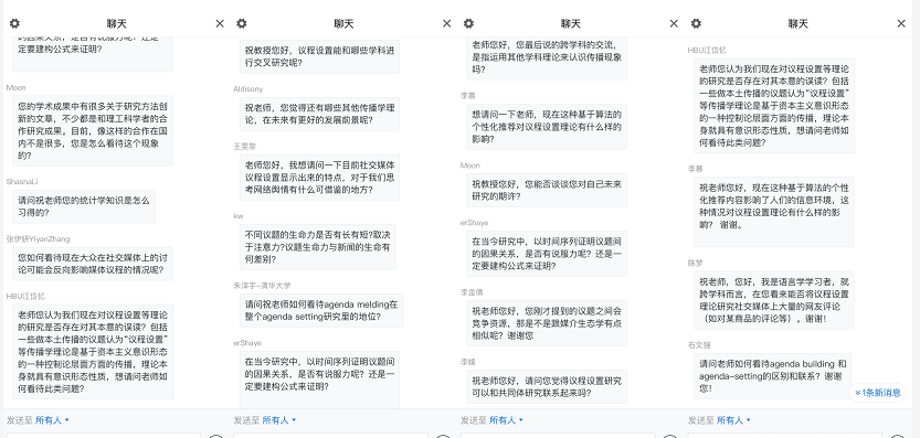 整场讲座祝教授娓娓道来,激发了与会师生们的思考,引发大家积极讨论,在互动提问环节祝教授耐心解答了“议程设置理论未来发展及研究方向”“如何区分两个议题之间的合作或独立关系”“时间序列证明议题间因果关系”“统计学的学习训练过程”等问题,祝教授认为未来的媒介革命不是数字技术(digital)主导、而是生物技术(biological)主导的,技术进步未来可期。