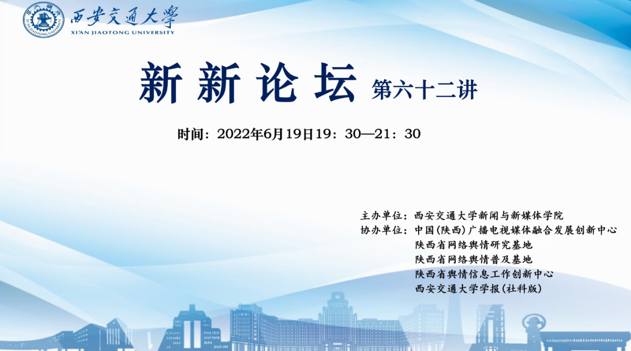 2022年6月19日晚,新新论坛第六十二讲在腾讯会议线上顺利举行。为进一步丰富师生学术生活,营造浓厚学术氛围,新新论坛全新改版升级,从本期开始每期推出两位专家,以激发思想碰撞,绽放多元观点。
