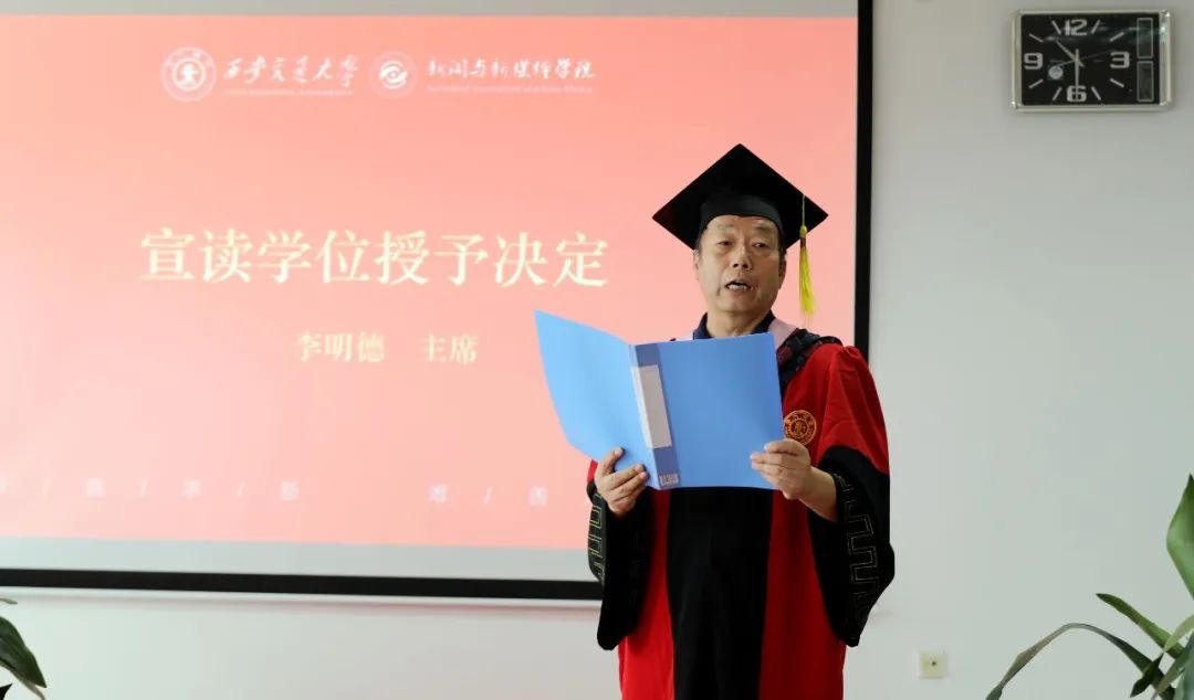 学位分委员会主席李明德宣读学校授予研究生毕业生硕士学位、本科生毕业生学士学位的决议,并公布优秀毕业生、优秀毕业生干部名单。