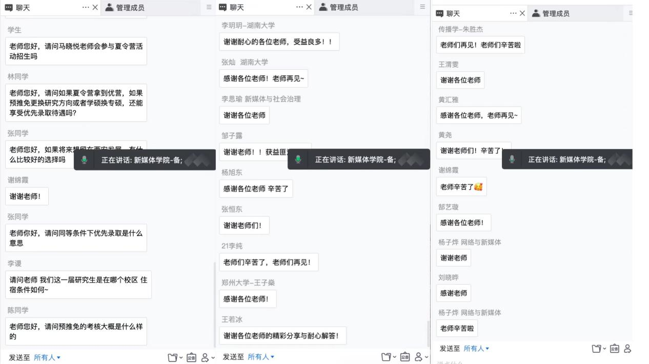 7月14日开展营员面谈,学生们进行风采展示,并与来自新闻系、传播系、新媒体系等多位硕士生导师交流沟通。经过多小时的风采展示及专家评议,本届夏令营评选出了82名优秀营员。