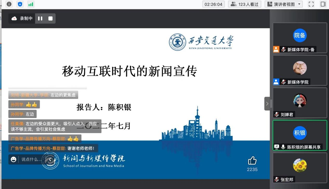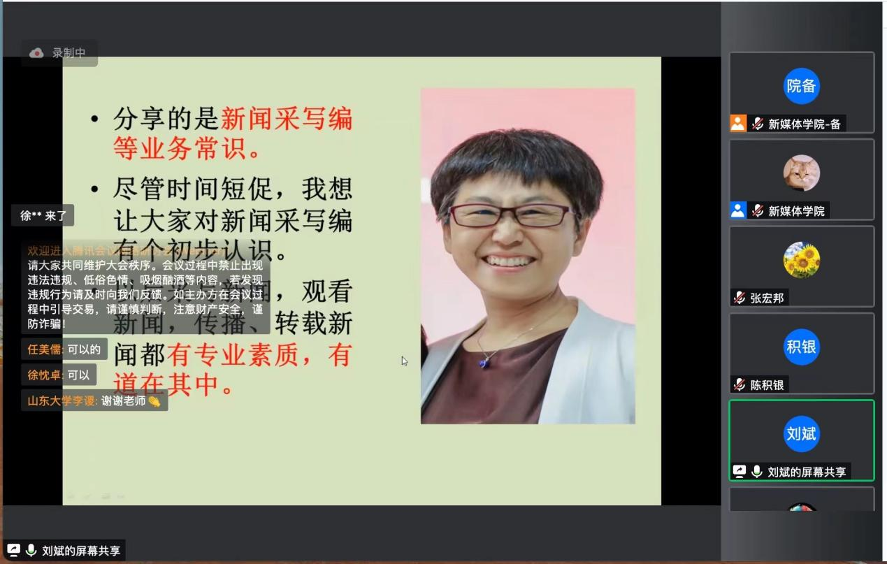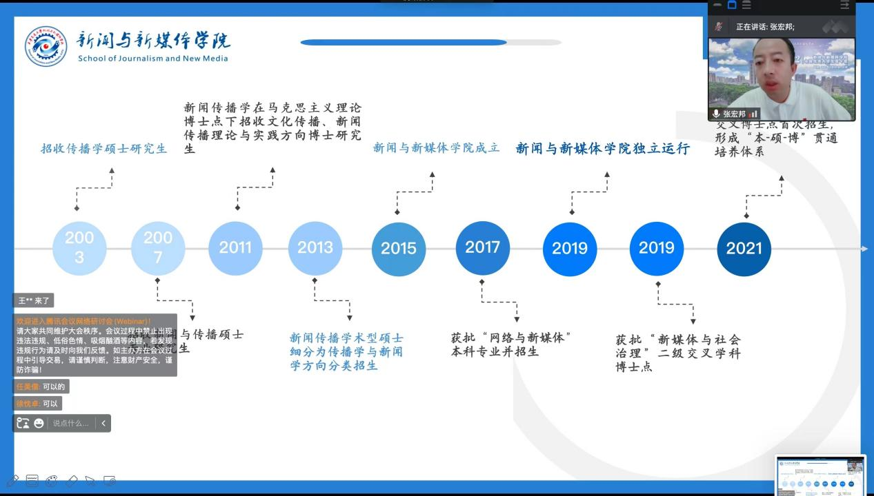 基本情况,新闻系刘斌老师、传播系刘婵君副教授、新媒体系陈积银教授等教师代表参加,并进行了学术分享。