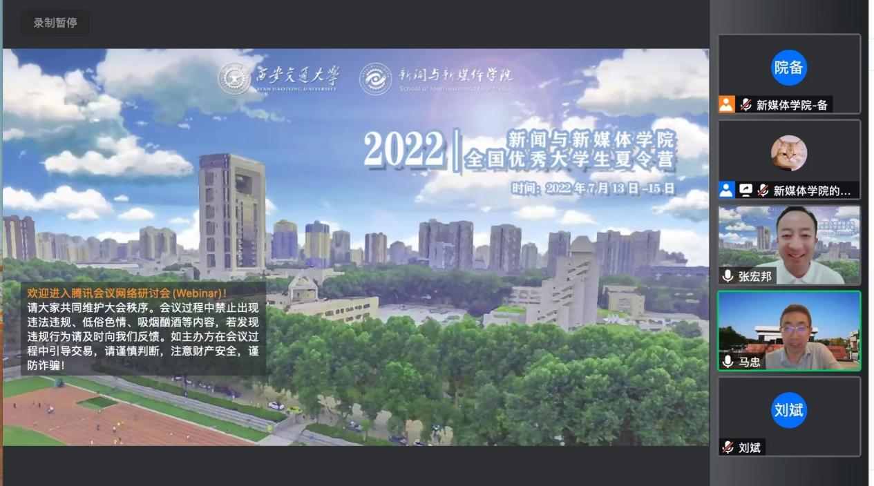 随后,刘斌老师、刘婵君副教授、陈积银教授三位老师先后从疫情案例中的新闻采写编、中国主流媒体建设性新闻实践和移动互联时代的信息传播等方面进行了精彩的专题讲座,带领营员们近距离感受pg电子试玩