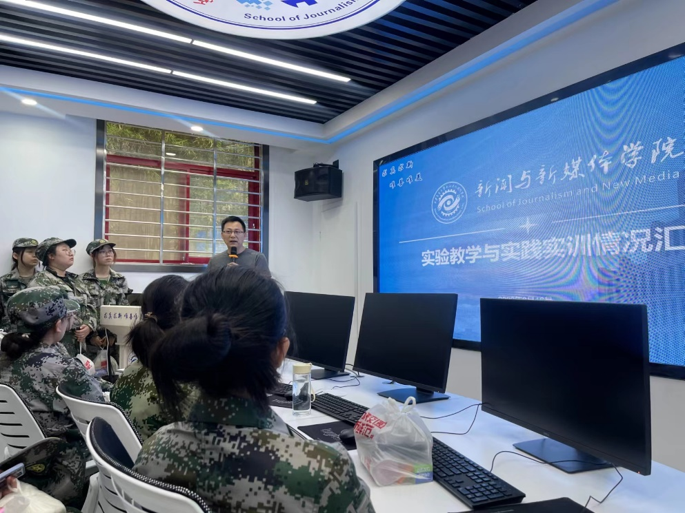 党总支副书记韩博、副院长张宏邦、新媒体2101班主任杨帆和研究生辅导员孙艳婷四位老师来到操场上对军训学生表示慰问。