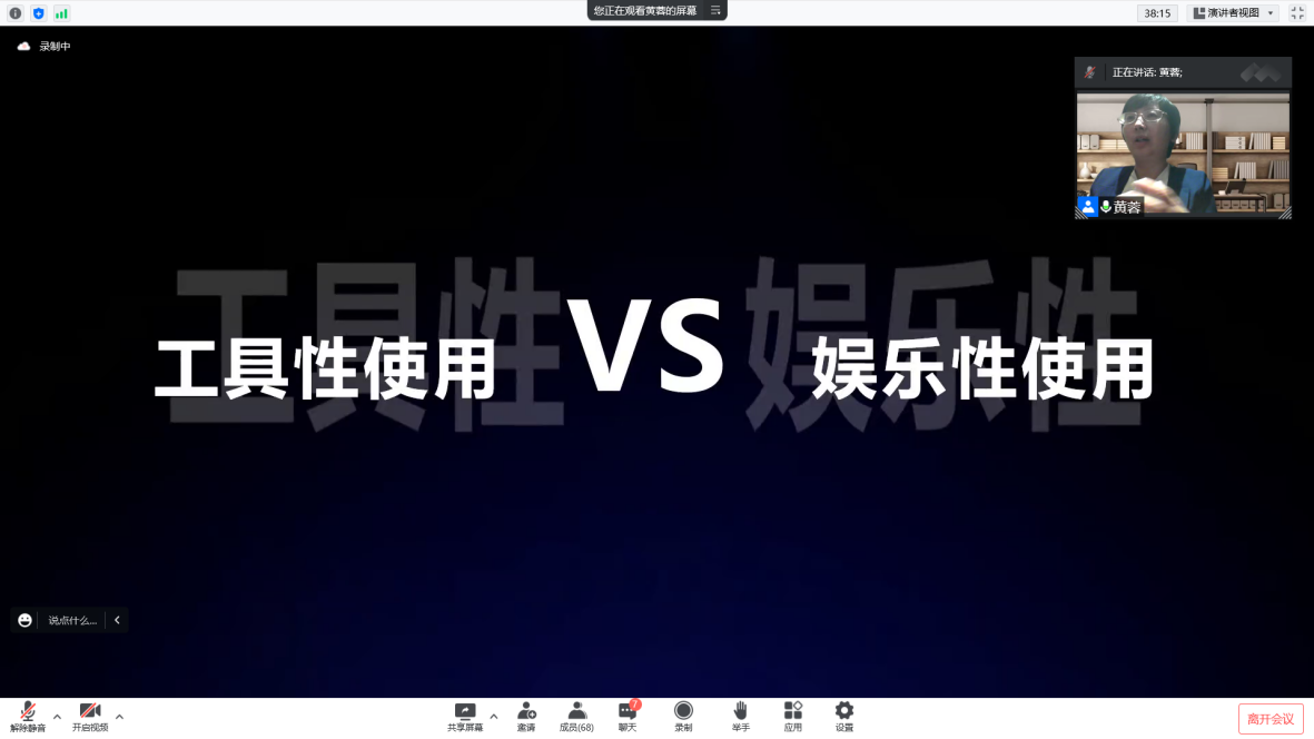 首先是工具性使用与娱乐性使用之间的矛盾。黄蓉老师指出,数字公民媒介使用的原则是,将其视为一种工具,增加工具性使用,减少娱乐性使用。原因在于,将媒介视为工具,能够充分发挥媒介的技术特性,让技术服务于生活,从而实现技能的提升;而将媒介用于消遣娱乐,我们就会深陷网络信息的洪流,被无限消耗。因此,我们要做媒介的控制者,而非被媒介牵着鼻子走。为此,应当将媒介视为信息交流的工具、提升效率的工具和拓展资源的工具,从这三个方面利用网络资源。