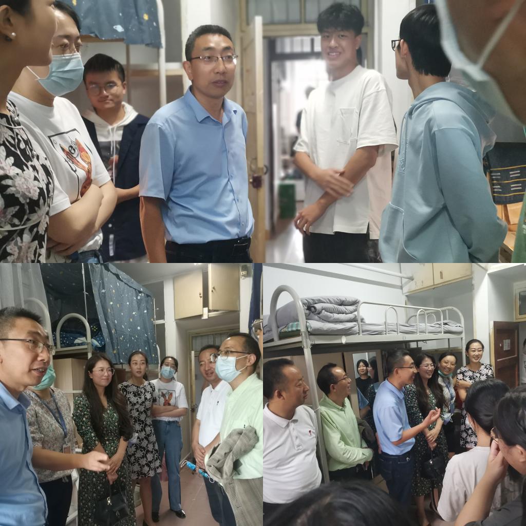 院长兼党总支书记马忠,副院长孙鹤立、张宏邦,院长助理张立,院长助理兼院办主任范晓莹,传播系主任、工会主席吴锋,教务员马樱支、辅导员孙艳婷一行前往崇实书院走访慰问2022级本科新生。