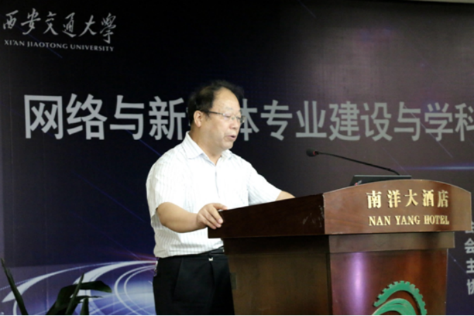李明德教授在“网络与新媒体专业建设与学科发展”高峰论坛上致辞