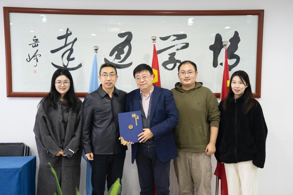 马忠院长为博达软件魏小立董事长颁发了“西安交通大学新闻与传播专业研究生协同育人合作导师聘书”。马忠院长指出,要进一步深化院企合作,从共建智库、联合人才培养、组建数字实验室等方面深化合作,共同探索教育数字化建设的校企合作新模式。