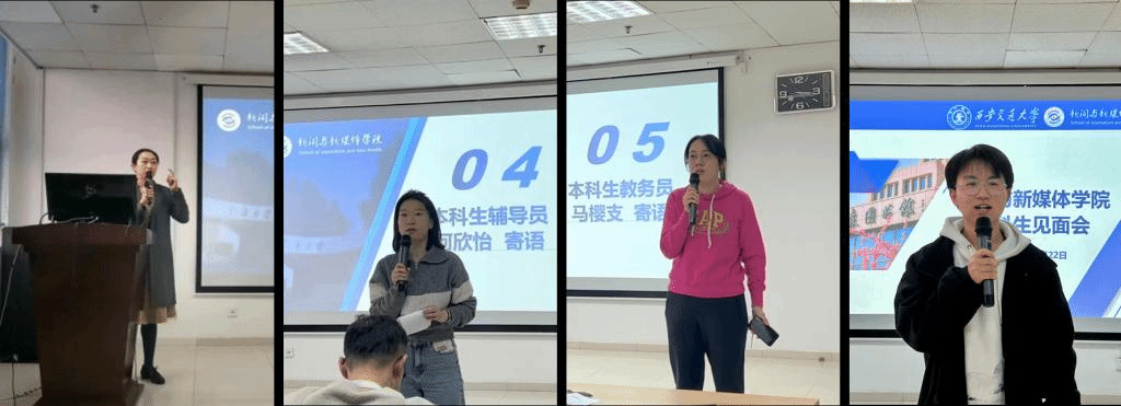 教务员马樱支分别以不同的主题表达了对同学们的殷切期望,希望同学们勤加学习、积极进取,主动把握提升自我的机会,并祝愿同学们能够在不断的学习和实践中实现个人理想。新媒体2202班班长罗永睿作为学生代表发言,表示从这次见面会中收获颇多,会带着思考,珍惜大学四年时光,不负老师们的期待。