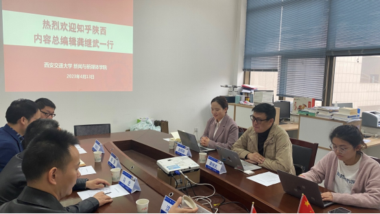 2023年4月13日下午,知乎陕西内容总编辑龚继武一行来校与pg电子试玩(中国)官方网站