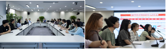 师生首先观看了陕西网围绕建党百年、乡村振兴、二十大精神宣传等主题策划制作的新闻宣传作品。随后,同学们结合参观感受与专业所学,就新闻选题策划、个人专业技能提升、假期实习实践等与陕西网三位部门负责人交流。受乡村振兴短视频作品《归雁》启发,新媒体2101班靳天阳同学说陕西网的很多新闻报道将典型人物故事置于宏大时代背景下,进行创新叙事,如《微光》摄影作品栏目记录了西安城里在各自岗位上默默耕耘的平凡的工作者。新媒体2101班钱子懿同学说《党史可以这么学》系列展现出党史教育的趣味性,《数据陕西》则用数据可视化的形式生动呈现了陕西各方面的发展进步,这些创新的优秀作品让他对主题新闻宣传有了更全面的理解。