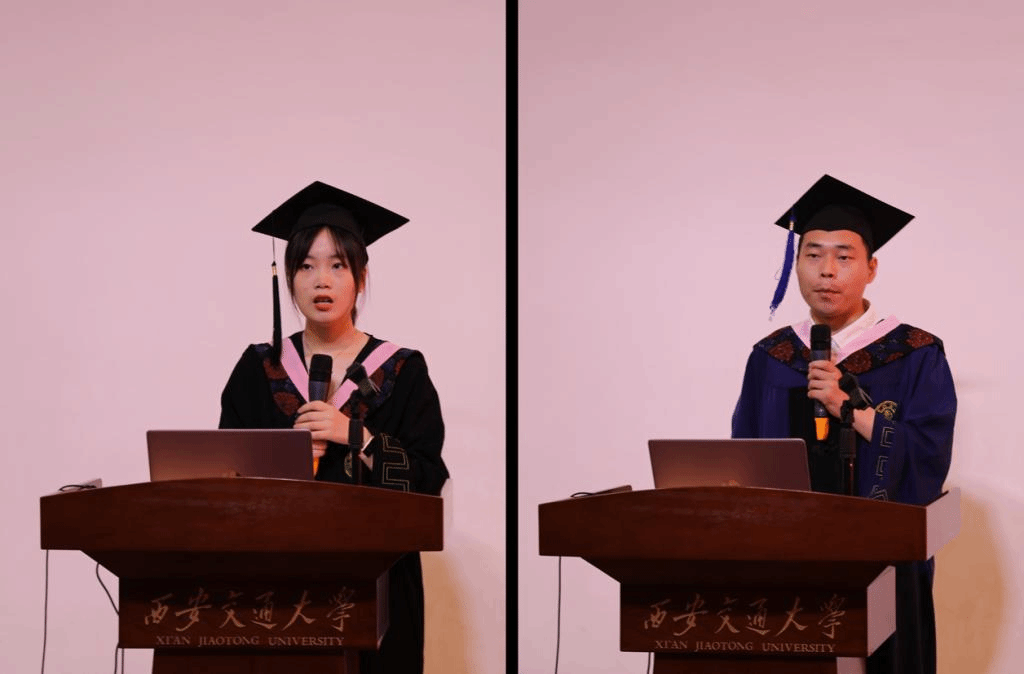 本科毕业生代表张艺啦同学、硕士毕业生代表黄斌同学发言,他们讲述在交大成长和奋斗的历程,表示无论未来在哪里,都将继续践行“求真求新、唯善唯美”的院训,传承西迁精神和饮水思源的交大传统,厚植家国情怀,同时也表达了对学校和老师的感谢,也为学校、老师和全体毕业生们送上了最美好的祝愿。