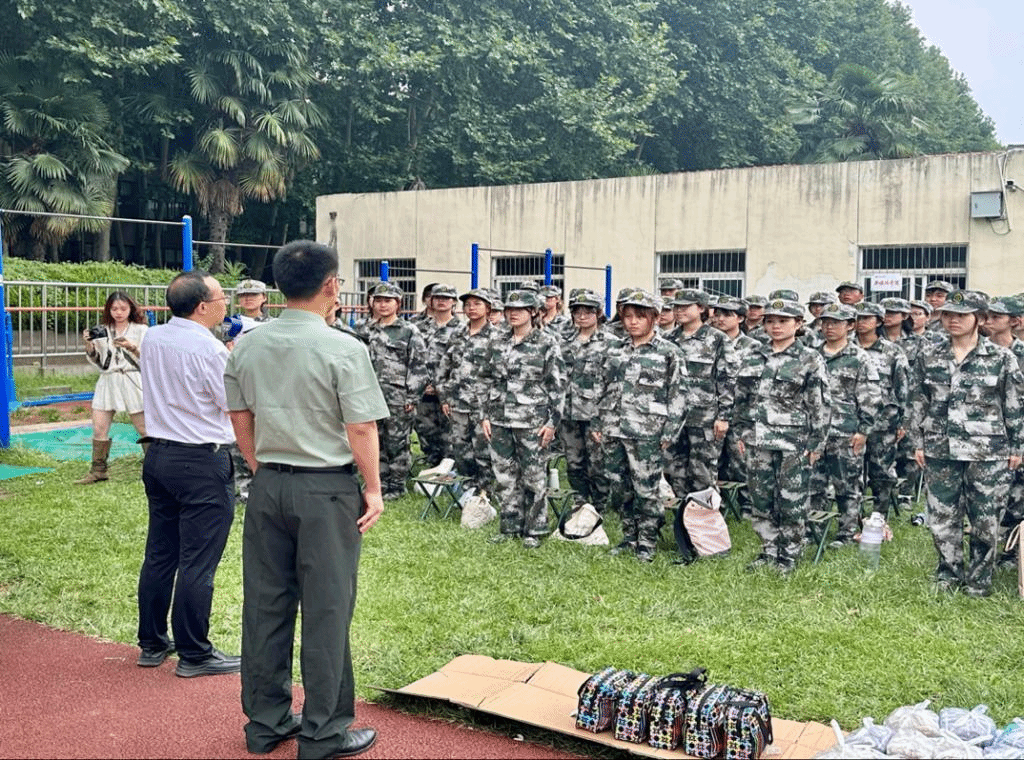 副书记吴锋、教师代表申楠老师、本科生辅导员薛成、研究生辅导员李媛媛和班主任朱利平老师心怀热忱与关爱,给一线教官和2023级新媒体学子们送来了慰问品,也带来了pg电子试玩