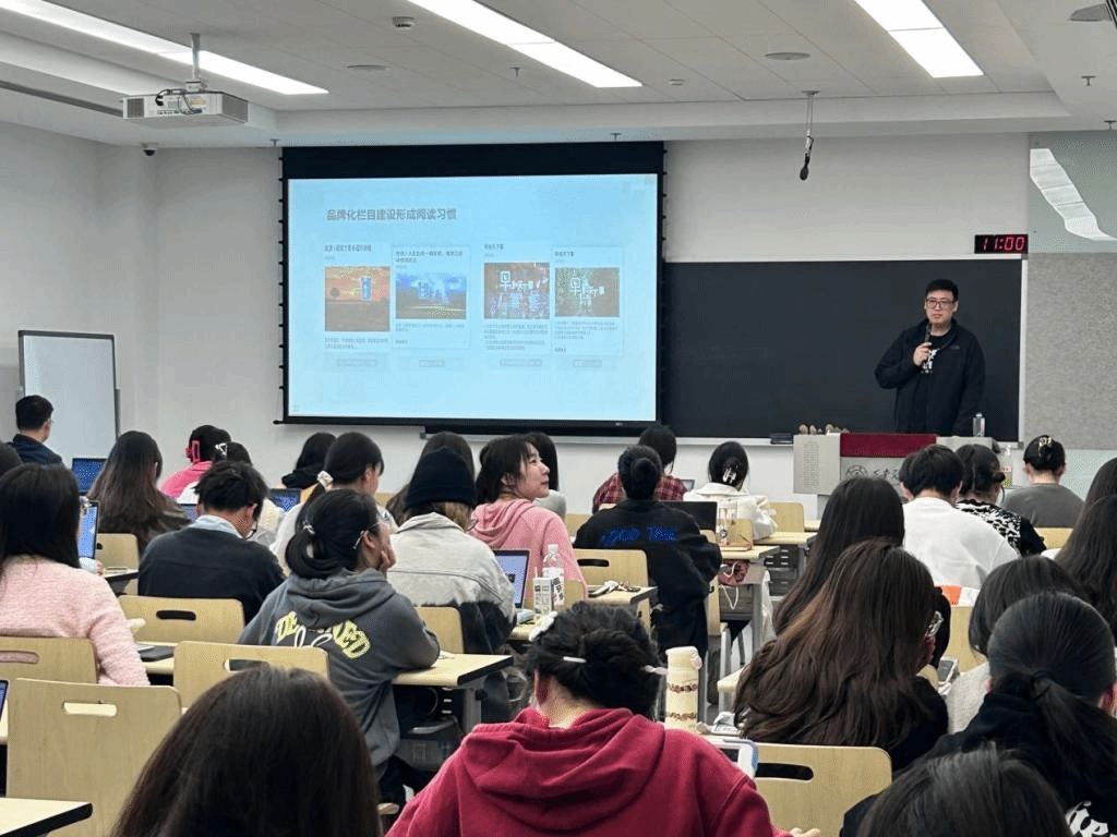 龚继武老师在《社交媒体理论与实务》课堂上生动分享了社交媒体经验,围绕大模型时化的社交媒体内容分发逻辑及优质内容的产出标准,结合自身工作经历,为同学们详细分析了当前时代社交媒体的运营逻辑。龚老师从互联网思维引入,介绍了从消费互联网到产业互联网的发展历程以及人机关系的演进,从算法的逻辑出发,分析了基于用户画像和内容理解的信息推送流程,进一步加深了同学们对互联网信息算法推送的理解。此外,龚老师详细讲解了自媒体时代的内容推荐,从标题、封面等多个维度举例展开当前媒体平台的爆火新闻产生的原因,并结合自身在知乎平台的工作经历,指明了当前社交媒体平台的发展路径与运营模式,为同学们在接下来的实习与就业提供了自身的指导性建议。