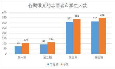 图2 各期微光志愿者与学生人数变化
