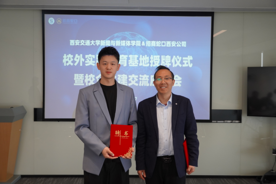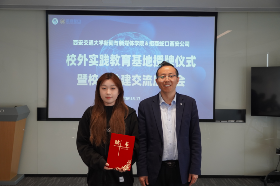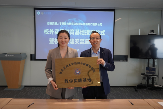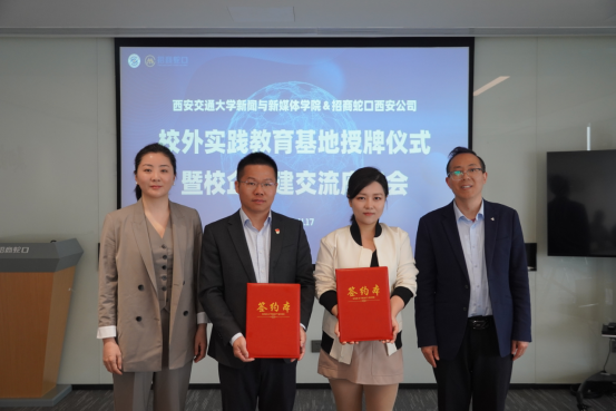 为招商蛇口西安公司授“教学实践基地”牌匾,就校企合作签署战略合作协议。双方围绕党建共建、新媒体人才联合培养、新媒体运营等核心问题,就如何共同打造更具活力与特色的校外实践教育平台、建立校企联合的学生培养机制、面向“一带一路”沿线国的中国形象与国际传播话语体系建设进行了深入探讨。未来双方还将开展“业界精英进课堂”等活动,在双向交流科研实践方面进行深度合作,实现资源共享、优势互补、合作共赢。