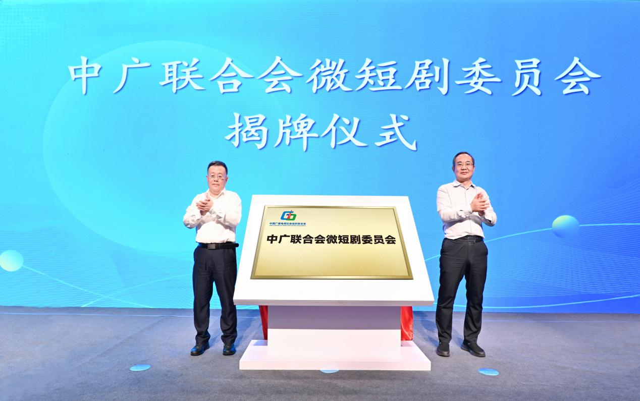 中国广播电视社会组织联合会副会长兼秘书长黄炜与西安交通大学党委常委、宣传部部长成进,为中广联合会微短剧委员会揭牌