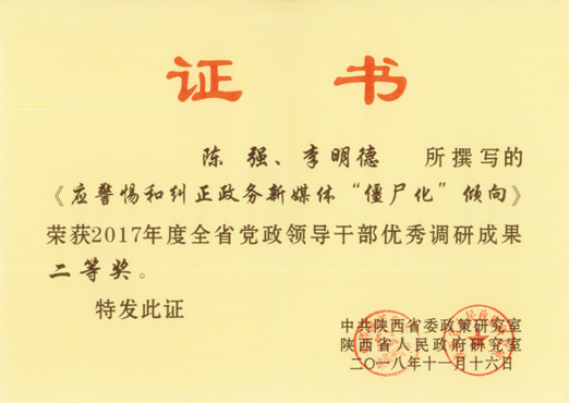 日前,2017年度全省党政领导干部优秀调研成果评选结果揭晓,我院陈强副教授和院长李明德教授撰写的调研报告《应警惕和纠正政务新媒体“僵尸化”倾向》荣获二等奖。