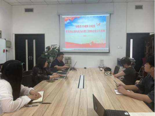 党纪学习环节,支部书记李巨星讲纪律党课《知敬畏存戒惧守底线——把铁的纪律内化为日常工作的自觉言行准则》。党课主要分为四部分,一是充分认清党员干部违纪违法的严重危害,二是深入剖析典型案例的问题根源,三是当前党员干部在遵规守纪方面存在的问题,四是以实际行动立起新时代党员干部的好样子。通过党课内容,与会党员深刻理解了党纪的重要性,领会到将铁的纪律内化为日常工作自觉言行准则的必要性。