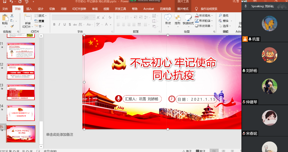 2022年1月15日晚,博2163党支部召开组织生活会,本次专题研讨会议由党支部书记巩雪以及团支部书记刘娇杨以“不忘初心 牢记使命 同心抗疫”为主题共同组织开展。