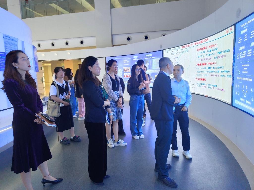 一行在王小华的带领下参观了成果展示大厅和轨道交通未来技术研究院测试平台。