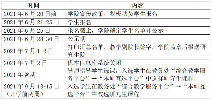 选拔优秀本科生提前进入研究生培养工作时间表